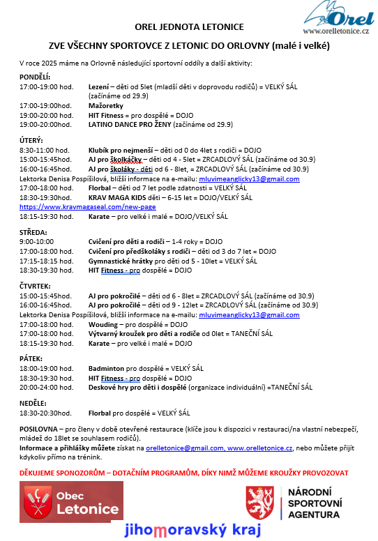 Informace, zajímavosti, inzerce, nabídky, poptávky, apod. související s Letonicemi a blízkého okolí.